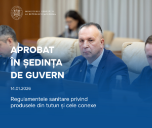 Cabinetul de miniștri a aprobat astăzi, 14 ianuarie, regulamentele sanitare privind produsele din tutun și produsele conexe, dispozitivele și accesoriile de utilizare, reîncărcare sau încălzire a acestora, în vederea consolidării cadrului normativ în domeniul controlului tutunului.
